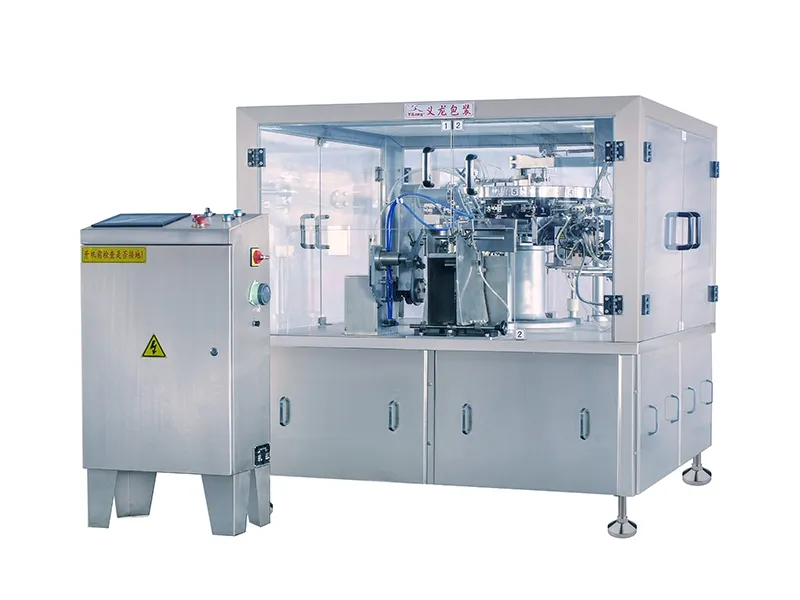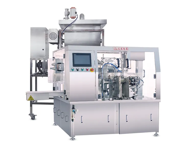 The YL-8SR automatic rotary premade pouch packaging machine is designed for high-efficiency packaging of flat pouches and PE pouches. This versatile pouch filler integrates seamlessly with various weighing and dosing systems to handle both single and multi-material packaging requirements.